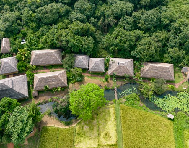 Das Amuna Ayurveda & Wellness Retreat, gelegen am malerischen Kandalama-See und umgeben von üppiger Natur, bietet auf seinem 20 Hektar großen Gelände mehrere im sri-lankischen Stil erbaute Wohnhäuser, ein Restaurant, eine Lobby, einen Beratungsraum für Konsultationen mit dem Ayurveda-Arzt, einen Yogapavillon und diverse Behandlungsräume. Dieser Ort, inspiriert von der traditionellen Lebensart Sri Lankas, ist eine wahre Ruheoase. Hier können Sie nicht nur klassische Wellness- und Ayurveda-Anwendungen wie Massagen und Kräuterbäder genießen, sondern auch durch Yoga, Meditation und die authentische Küche Sri Lankas tief in die lokale Kultur eintauchen und unvergessliche Erfahrungen sammeln. Im Sinne des digitalen Detox sind die Zimmer bewusst ohne Fernseher gestaltet, um den Gästen eine Pause von modernen Störungen zu ermöglichen. WLAN ist jedoch im Restaurantbereich verfügbar. Das Amuna legt großen Wert auf Nachhaltigkeit, was sich sowohl in der umweltfreundlichen Bauweise als auch in der Verwendung von recycelten Materialien zeigt, um die Natur zu schützen und zu ehren.