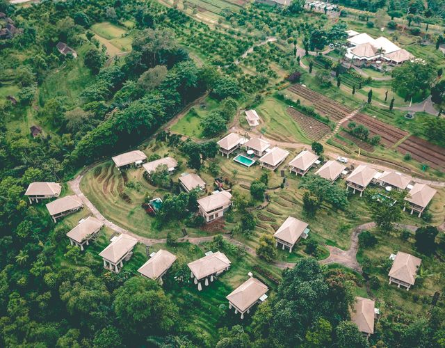 In einer Höhe von 950 Metern bietet das Bagus Agro Pelaga frische Bergluft und ein beeindruckendes Panorama. Umgeben von dichtem Dschungel, spürt man hier den wahren Geist Balis. "Tri Hita Karana" - die Harmonie zwischen Mensch, Gott und Natur - wird in diesem Resort aktiv gelebt. Das Bagus Agro Pelaga ist eine nachhaltige Oase, die Luxus mit ökologischer Verantwortung vereint. Auf 17 Hektar werden biologische Früchte und Gemüse angebaut, die sowohl die Gäste als auch die Insel bereichern. Das Ziel ist es, den Besuchern ein intensives Naturerlebnis zu ermöglichen - mit Yoga, balinesischen Massagen und traditioneller Kultur. Am Abend wird ein kulinarisches Fest mit den Aromen Balis geboten. Ein Ort, an dem Körper, Geist und Seele in Harmonie sind.