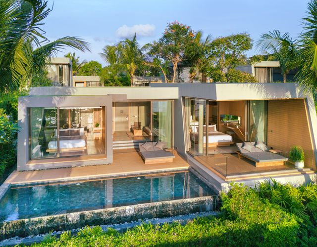 Die 35 stilvollen Poolvillen im MASON Pattaya, nur 150 Meter vom Strand entfernt, bieten einen herrlichen Blick auf die Bucht von Na Jomtien. Gäste genießen höchsten Komfort, moderne Architektur und absolute Privatsphäre, ideal für Flitterwochen oder entspannte Tage zu zweit. Jede Villa verfügt über einen privaten Salzwasserpool, Whirlpool, ein Sonnendeck sowie eine hochwertige Ausstattung.