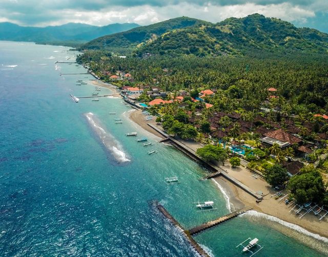 Candidasa, ein charmantes Küstendorf an Balis Ostküste, besticht durch seine friedvolle Atmosphäre und die beeindruckende Aussicht auf das tiefblaue Meer. Das Dorf ist für seine hervorragenden Tauch- und Schnorchelplätze bekannt, die Einblicke in eine beeindruckende Unterwasserwelt mit farbenprächtigen Korallen und vielfältigen Meereslebewesen bieten. Entlang der Küste finden sich einladende Strandcafés und Restaurants, in denen man lokale Delikatessen genießen und den Sonnenuntergang über dem Meer erleben kann.