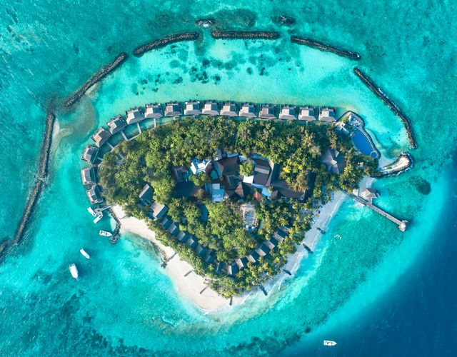 Das Taj Coral Reef Resort & Spa, gelegen auf der herzförmigen Insel Hembadhu, bietet mit seiner eigenen Lagune und den umfassenden, paradiesischen Meerblicken den perfekten Ort, um dem täglichen Leben zu entfliehen. In diesem exklusiven 5-Sterne-Resort, das mit seinen unberührten Stränden, viel Sonnenschein und einer romantischen Stimmung beeindruckt, lädt ein über 1000 Jahre altes Korallenriff mit einem Schiffswrack dazu ein, die farbenfrohe Unterwasserwelt der Malediven beim Tauchen zu entdecken.