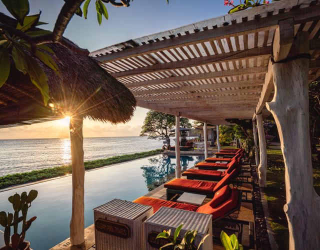Das Restaurant "Bamboo", welches zum Hotel gehört, befindet sich direkt am Meer und eröffnet einen wunderbaren Ausblick auf die Küste in Richtung Ost-Bali. Täglich von 8 bis 22 Uhr können Gäste hier Getränke sowie eine Vielfalt an internationalen, indonesischen und vegetarischen Speisen genießen.