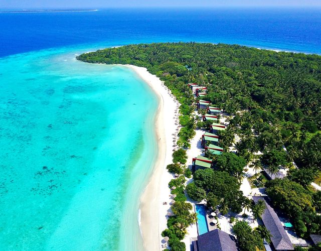 Hier genießen Sie authentische Naturerlebnisse und herzliche Gastfreundschaft. Der Spa-Bereich lädt mit klassischen und ayurvedischen Massagen zur Erholung ein, während tägliche Yogastunden Körper und Geist in Einklang bringen. Erkunden Sie die Insel mit dem Fahrrad, schnorcheln Sie im klaren Wasser oder entspannen Sie einfach unter Palmen. Erleben Sie nachhaltigen Tourismus, das wahre maledivische Leben und unvergessliche Momente.