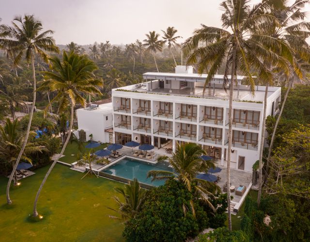 Das 2025 neu errichtete Boutiquehotel Villa Lanka Flair bietet den perfekten Rahmen für eine ganzheitliche Auszeit am Meer. In diesem familiär geführten Haus mit nur 16 Zimmern genießen Sie erstklassige Ayurveda-Anwendungen, exzellente Kulinarik und entspannendes Yoga. Das Hotel überzeugt mit individuellem, modernem Design, Liebe zum Detail und einem Hauch von stilvoller Extravaganz. Von der Yoga-Terrasse bietet sich ein weiter Blick über das tiefblaue Meer, wo die Sonne abends am Horizont versinkt. Der tropische Garten mit altem Kokospalmenbestand und üppiger Vegetation umgibt das Hotel harmonisch. Am privaten Strand, entlang des 15 Meter langen Natursteinpools und im Garten laden zahlreiche bequeme Liegen mit Sonnenschirmen zum Entspannen ein. Rückzugsorte wie die mit Palmwedeln gedeckte Strandhütte oder die zum Garten offene Bibliothek bieten ein stilvolles Ambiente - ideal, um bei einer Tasse Tee zu entspannen und die Seele baumeln zu lassen.